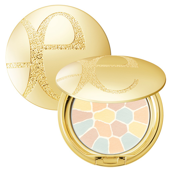 ・ラ プードルの上にパフをあて、パフを45度ほど回転させ、5色のペールカラーがほどよくブレンドされるようにお粉をとります。