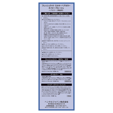 - フレッシュライト MHCa NVB[有効成分]:塩酸2,4‐ジアミノフェノキシエタノール、硫酸トルエン‐2,5‐ジアミン、レゾルシン