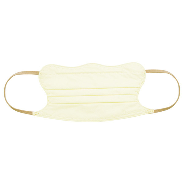 真っ白ではないクリーム色と耳紐のベージュで肌なじみが良く、トーンオントーンでリラックスムードと奥行きのあるナチュラルベーシックカラー。