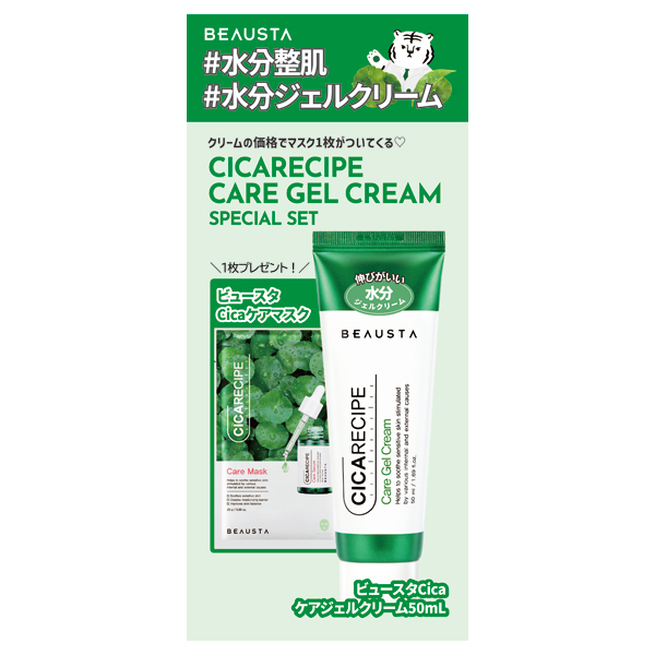 7種のCica成分※1とティーツリーオイル※2配合のジェルクリームにお肌を整えるスペシャルケアにピッタリのフェイスマスクがついてくるお得なセット。