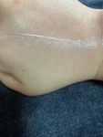 ●指全体を使って、中心から外側へのばすようにしてなじませ、フィットさせます。