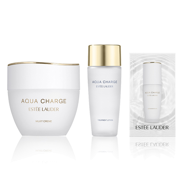 つけた瞬間はスフレのようにやわらかくコクのあるテスチャー、ハリ・弾力感・ツヤに満ちた肌へ導く「アクア チャージ 薬用ミルキー クリーム」現品(50mL)に、同シリーズのトリートメント ローションのギフト サイズ、