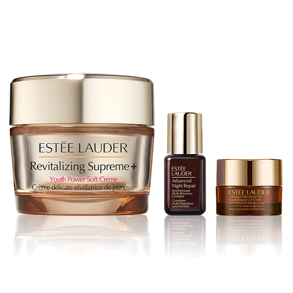 ふんわりエアリーなテクスチャーで、ハリもうるおいも叶える「シュープリーム プラス YP クリーム」現品(50mL) に、昼は紫外線や乾燥などのダメージから肌を守り、夜はうるおいを与えてケアするベストセラー*2美容液、目周りをくまなくケアするアイ ジェルクリームのギフト サイズがついた@cosme SHOPPING限定の豪華なセット。