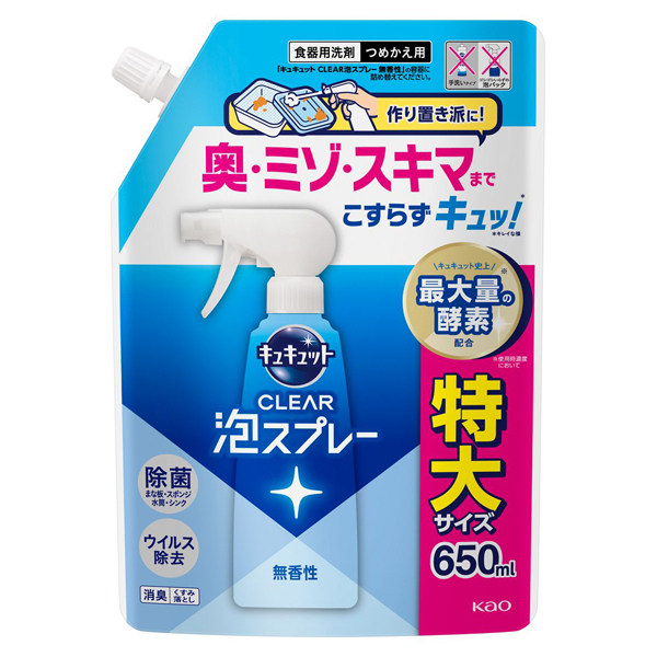 キュキュット史上最大量★の酵素配合!1本で除菌*・ウイルス除去※・消臭・くすみ落としの4つの効果。無香性