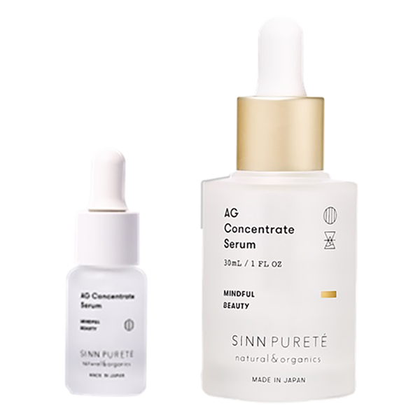 AGコンセントレイトセラムa:ヒトデからサスティナブルに抽出したJuventide※1を高濃度配合。糸を引くような粘り気があるのに、肌にすっと浸透してベタつかないテクスチャーが特徴的です。ナイアシンアミドやハトムギ種子発酵液※2も配合し、肌全体の透明感アップも期待できます。肌を根底からブーストしふっくらとした艶のある若々しい肌へ導きます。