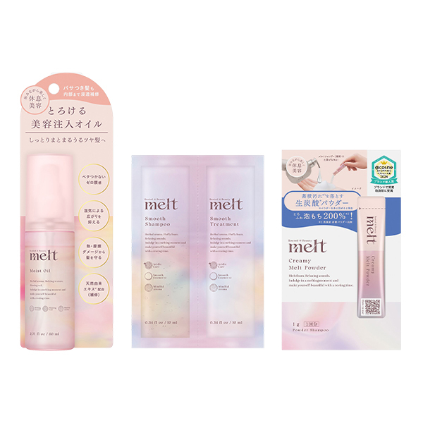 つけた直後からベタつかない、ゼロ膜感オイル。髪1本1本にとろけるように密着し、髪の内部まで浸透補修するモイストリペア処方。