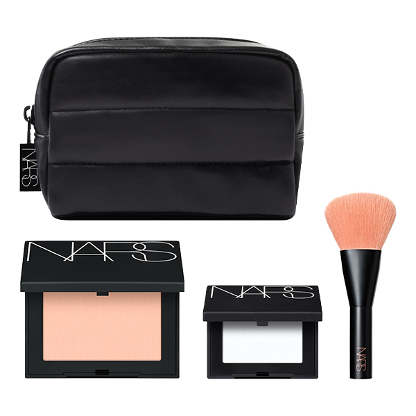 肌なじみ抜群のタルクフリーフォーミュラでにじみ出るような発色を叶えるパウダーチークと、光のヴェールで小じわや毛穴をぼかし透明感を高めるプレストパウダーのミニサイズに、ミニブラッシュブラシとオリジナルポーチがついた限定キット。