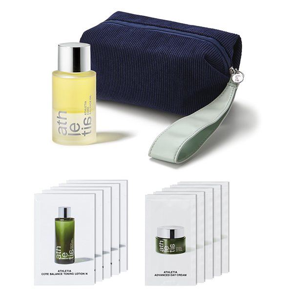 athletia全カテゴリー人気No1*(*2020年2月~2024年9月アスレティア会員登録者購入実績より)のコアバランスオイル現品、角質層の水分バランスを整え、うるおいを巡らせるトーニングローション Nと日焼けと乾燥によるダメージを防ぐ日中用クリームのサンプルをお試しいただけるセット。