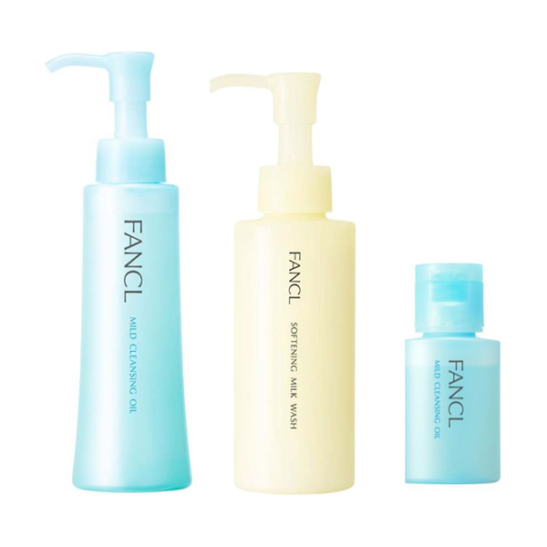 【FANCL人気商品セット】マイルドクレンジングオイル&やわ肌ミルク洗顔キット マイクレブルーミニボトル付き / 本体×2、特典×1 / 120mL、120mL、20mL