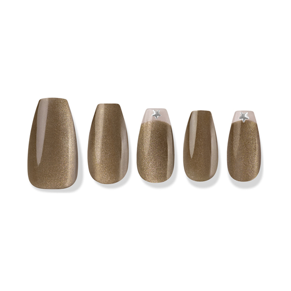 透明なフレンチに散りばめられたシルバーの星が、指先にアクセントをプラスします。
