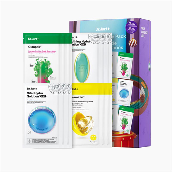ドクタージャルトの4種の人気マスクを3枚ずつ詰め込んだ、超お得なホリデイ マスク セット。