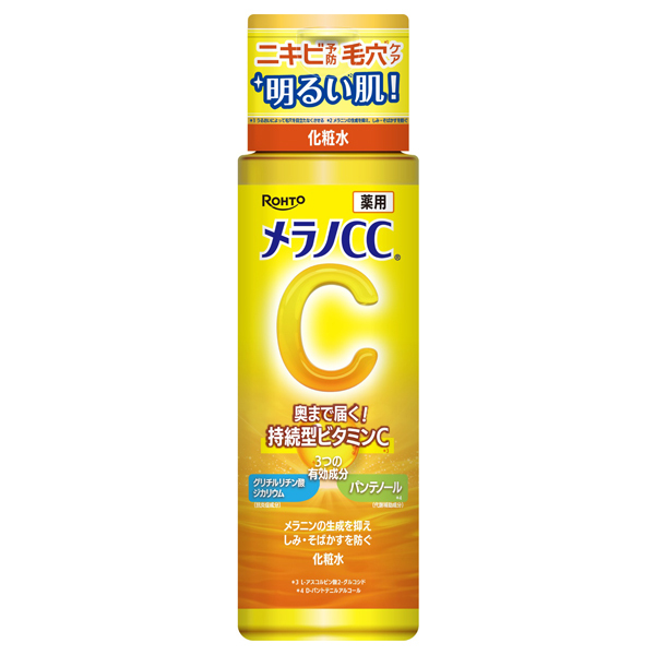 美白有効成分持続型ビタミンC誘導体(L-アスコルビン酸2-グルコシド)、抗炎症成分グリチルリチン酸ジカリウム、代謝補助成分パンテノール(D-パントテニルアルコール)の3つの有効成分が肌の奥まで浸透する薬用化粧水。