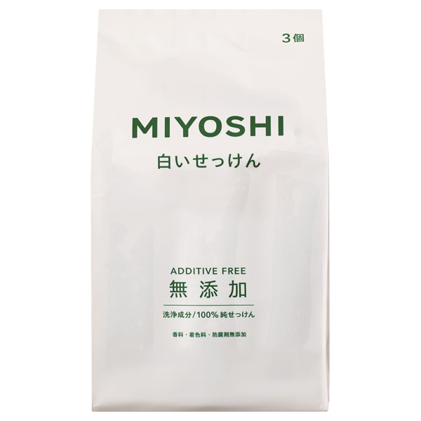 香料・着色料・防腐剤、無添加。原料の品質にこだわった食品用天然油脂を使用し、丁寧に本釜焚き製法で作った純せっけん。