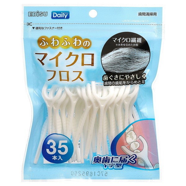 ふわふわでやわらかいフロスだからデリケートな歯ぐきにやさしく当たり、むし歯や歯周病(歯肉炎・歯周炎の総称)の原因となる、ハブラシでは落としきれない磨き残した歯垢を除去。