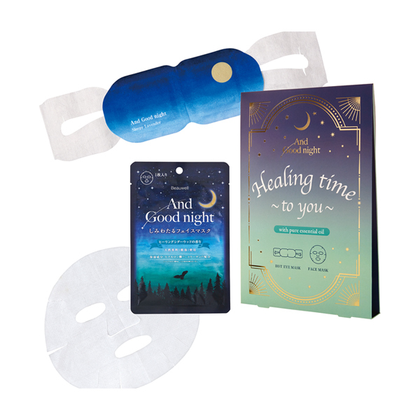 おやすみ前に天然アロマでほぐす・うるおす。たっぷり濃密美容液の「しみわたるフェイスマスク」と、じんわりあったか蒸気が心地よい「ほどけるホットアイマスク」のセット。