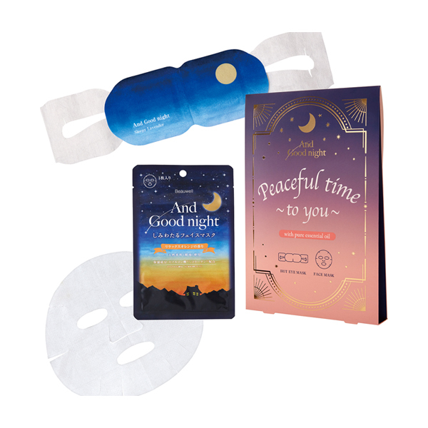 フェイスマスク:リラックスオレンジの香り、ホットアイマスク:スリーピーラベンダーの香り