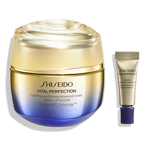 バイタルパーフェクションのモイスチャライザー*1に、シワ改善+シミ予防*2を1本に凝縮したクリームの特製サイズをセット。