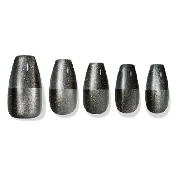 濃いブラックベースの上に光とともに徐々に現れるチェッカーボード模様。輝く冬の夜のシックなムードを指先にまとってください。