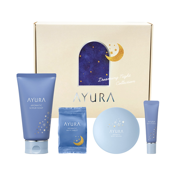 「ドリーミングナイトコレクション」は、心とからだに寄り添う限定の香り※と、肌をやさしく包み込む贅沢な美容成分が、夢心地なリラックスタイムへと導くナイトケアコフレ。