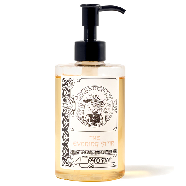 洗うたびに気分もリフレッシュできるハンドソープは、高級感を意識したとろみのあるテクスチャーで、ナチュラルな天然色素で着色。アミノ酸系洗浄成分のマイルドな使用感で泡立ちも穏やか。泡立てるとすぐに、オードトワレと同じ香りが広がります。泡切れも良く、素早く洗い流せるのに洗い上がりはしっとりで、心地よい香りが手肌に程よく漂います。ラベルにはルーム&ファブリックミスト同様に装飾資料集の表紙にトリポリの姫君イルゼに登場する手のアートをコラージュしており、優れた芸術は日常にあってほしいと願うミュシャのフィロソフィーを反映したデザインに仕上げました。