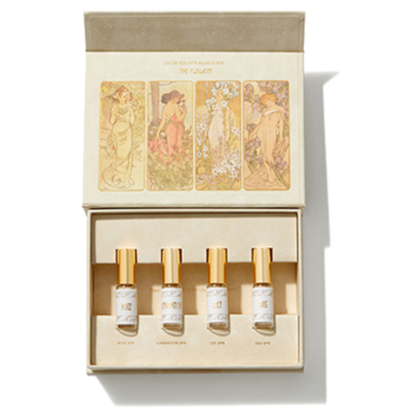 連作「四つの花」から生まれたオードトワレ4種のミニスプレーを収め、アートを鑑賞するように香りを楽しめるスペシャルボックス。