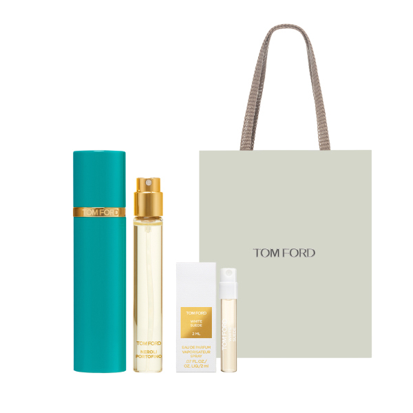 いきいきと、はじけるような、夢中にさせるような香り、ネロリ・ポルトフィーノ オード パルファム スプレィ 10mLに、「ホワイト スエード オード パルファム スプレィ 」ミニ パルファム、オリジナル ショッパーがついた限定セット。