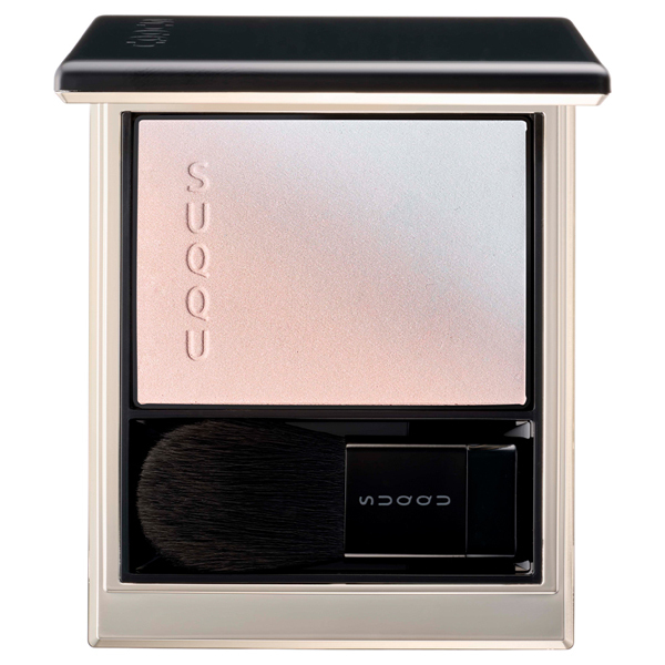 カラーパールが血色感を添えるピンクと、シルバーパールが輝くブルーのコンビネーションは、淡い発色と澄んだ艶で、頬にロマンティックな光を集めます。