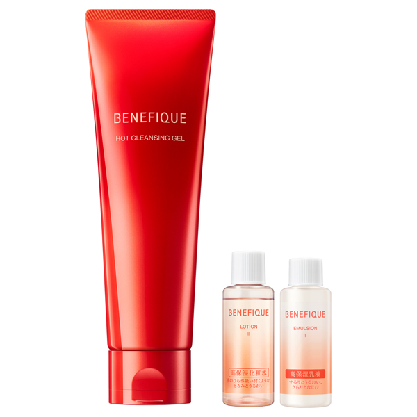 美容成分88%配合。のせた瞬間、熱に変わって表情までほぐすように洗い上げる温感メイク落としと、毛穴を忘れるほど隙のないキメ美肌に導く化粧水・乳液の特製サイズのセット