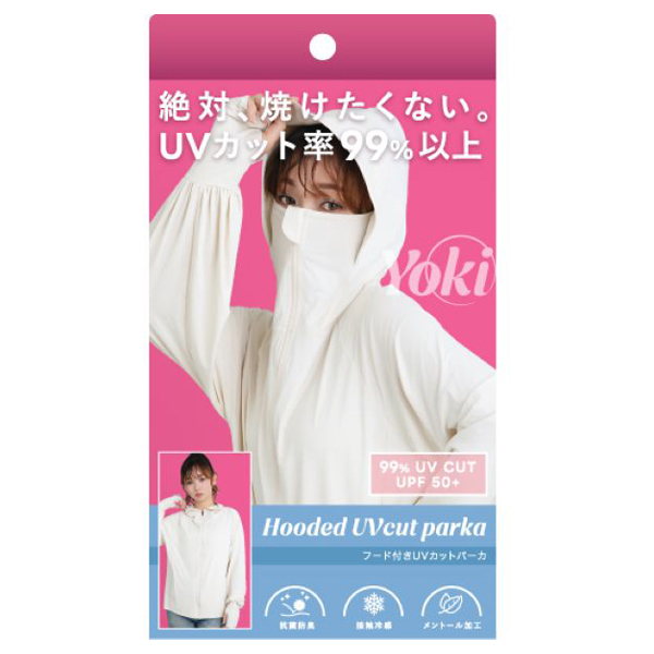 つば付きのフードなので、顔全体をしっかりとカバーしてくれます。また、ファスナーを閉めれば鼻先まで置えるので、日焼け対策しにくい首元も守ることができます。
