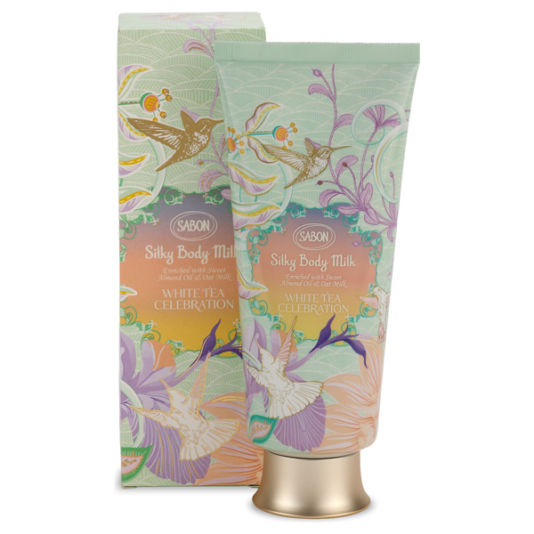 シルキーボディミルク:清潔な肌に円を描くようにマッサージしながら十分になじませます。