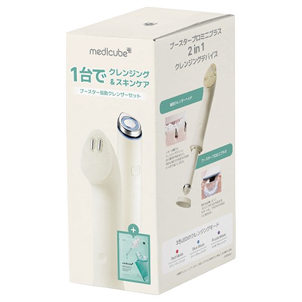 1台でクレンジング&スキンケア ブースター振動クレンザーセットです。専用のクレンジングヘッドと本体のブースタープロミニプラスを組み合わせて使用する2in1製品です。