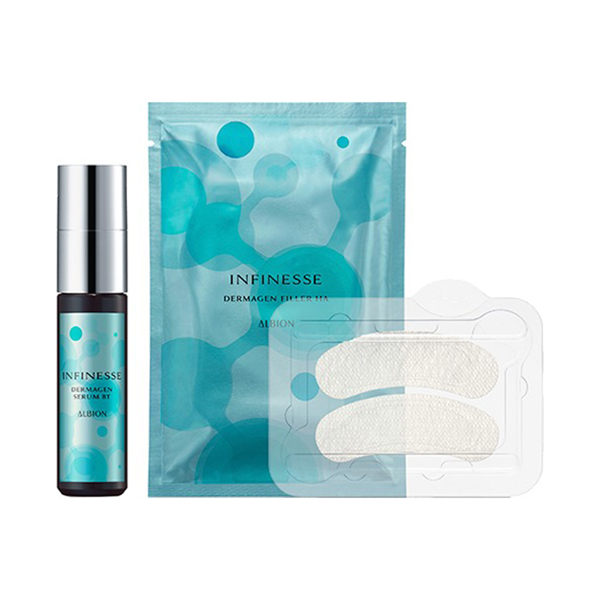 ・化粧水の後、「ダーマジェン フィラー HA」を目もとや口もとなどの気になる部分に貼り「ダーマジェン セラム BT」をマスクの上からなじませるようにお使いください。
