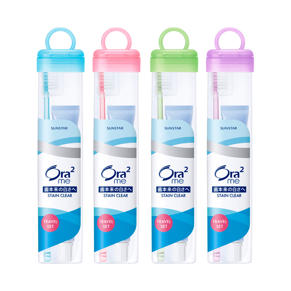 オーラツーミーハブラシミラクルキャッチとステインクリアペースト20g(医薬部外品)を組み合わせたソフトケース仕様です。それぞれのハンドルカラーに合わせたカラフルでおしゃれな歯みがきセットになっています。