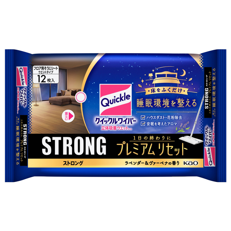 フロア用クイックル史上、最強のベタベタふき取り力のストロングシリーズだから、しつこい油汚れもゴシゴシしないで一気にサッパリ。