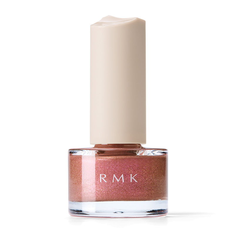 ピンクやオレンジの微細なパールがまたたくシェルピンク。やさしく繊細な光沢感で、つるんとなめらかさの際立つ指先に。