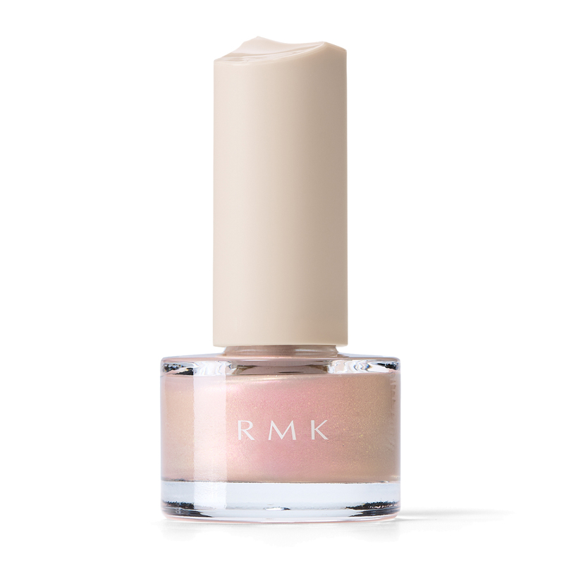 ピンクやオレンジの微細なパールがまたたくシェルピンク。やさしく繊細な光沢感で、つるんとなめらかさの際立つ指先に。