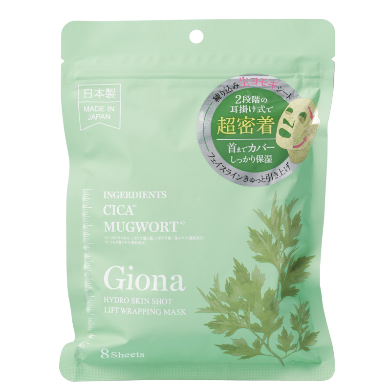 次世代CICA成分で注目の「マグワート(ヨモギ)」。生ヨモギを錬り込んだシートは耳掛け式で、ぴたっと密着。フェイスラインをきゅっと引き上げ※ながら、潤いをしっかりチャージ。