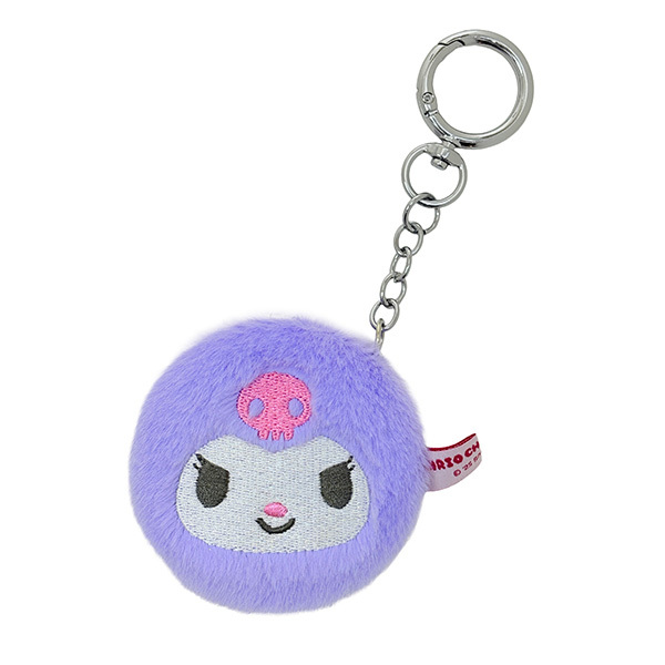 ふわふわファーにキャラクター刺繍がカワイイコンパクトミラー。普通の鏡と約2倍拡大鏡付き。カラビナリング付きで取り付けやすい。