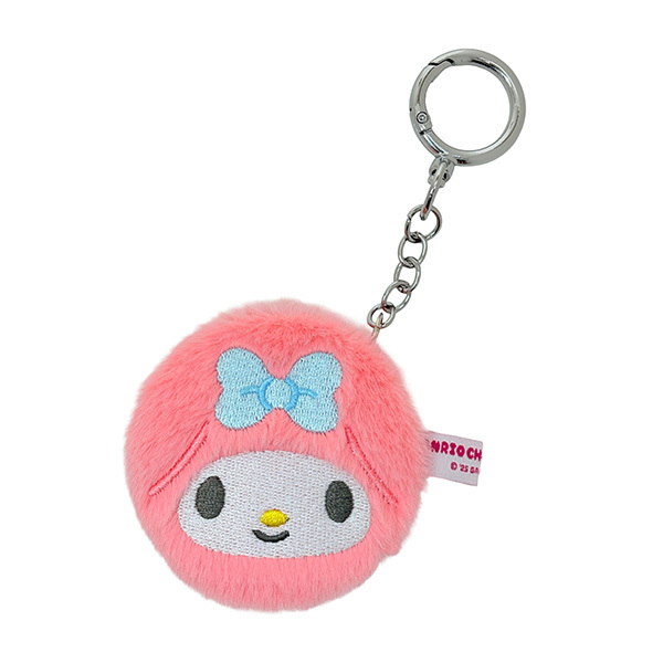 ふわふわファーにキャラクター刺繍がカワイイコンパクトミラー。普通の鏡と約2倍拡大鏡付き。カラビナリング付きで取り付けやすい。