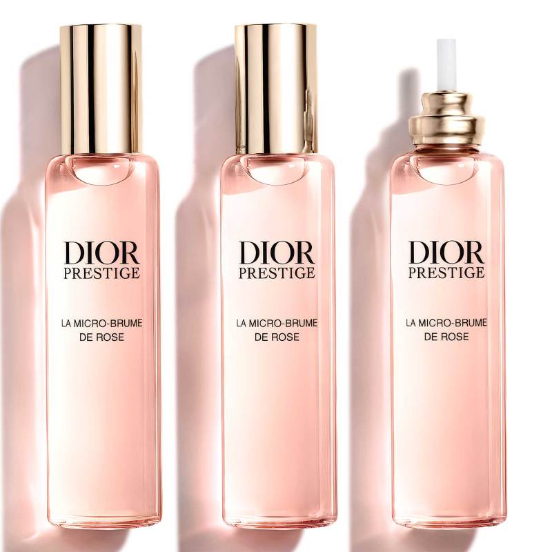 類まれな生命力を誇る花・グランヴィル ローズの恵み(*1)を凝縮した「ディオール プレステージ」から新しく登場した、プレミアム ミスト美容液のリフィル。
