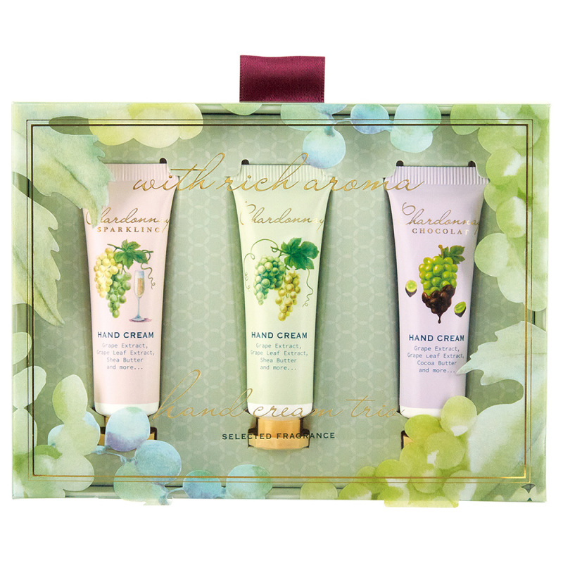 シャルドネシリーズ人気の香りをセレクトした、ミニハンドクリームの3本セット。