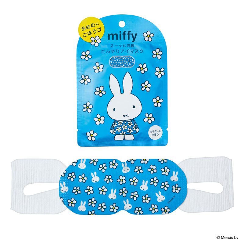 ミッフィーと花の総柄が目を引くアイマスクで、PCやスマホを使いすぎ時や仕事の合間に、やさしい冷涼感と共にリラックスタイムをお過ごしください。