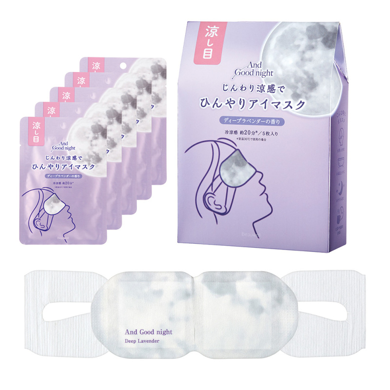おやすみ前に天然精油配合の安らぎアロマと清涼成分で目と目元をじんわり涼やかに。