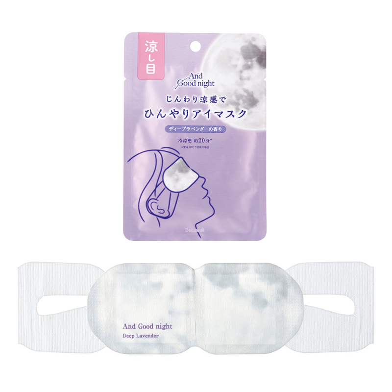 おやすみ前に、天然精油配合の安らぎアロマと清涼成分で目と目元をじんわり涼やかに。