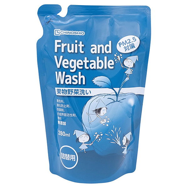 「Fruit and Vegetable Wash」は、野菜や果物に付着した農薬・ワックス・ほこりなどの皮表面の汚れをすっきり落とす、食品専用の洗浄料です。