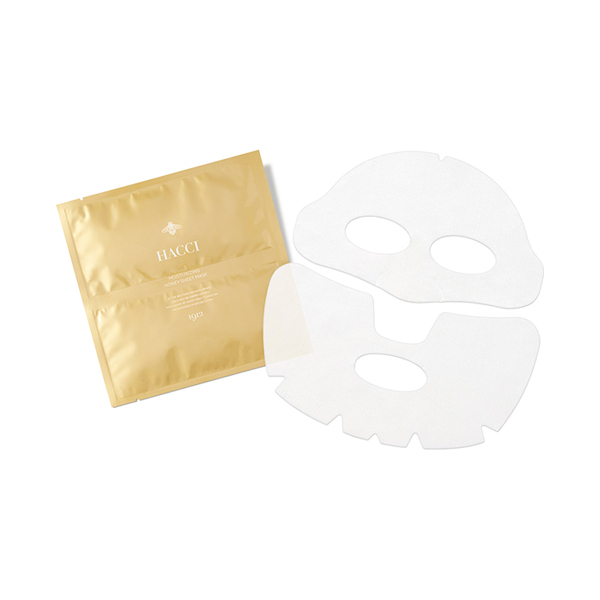 『乾燥しやすい飛行機の中でも肌の潤いを保ちたい』…。世界中を駆けめぐるマダムHACCIならではのコンセプトから生まれたシートマスクです。はちみつに加え、ローヤルゼリーエキス、加水分解コラーゲンを集結。肌を柔らかく潤しながら乾燥を防ぎ、キメ細かく整えます。また、肌にハリを与えるオウゴン根エキスや、透明感をもたらすシャクヤク根エキスなどが配合されています。たっぷり32mlの美容液を含ませた肌あたりのやさしいマイクロファイバーとレーヨンの3層構造シートで、はちみつのうるおいをたっぷりチャージ。上下に別れたマスクがフェイスラインもしっかり引き上げリフトアップ。翌日の朝まで、ぷりっと弾むようなハリを保ち、艶やかな肌へ導きます。