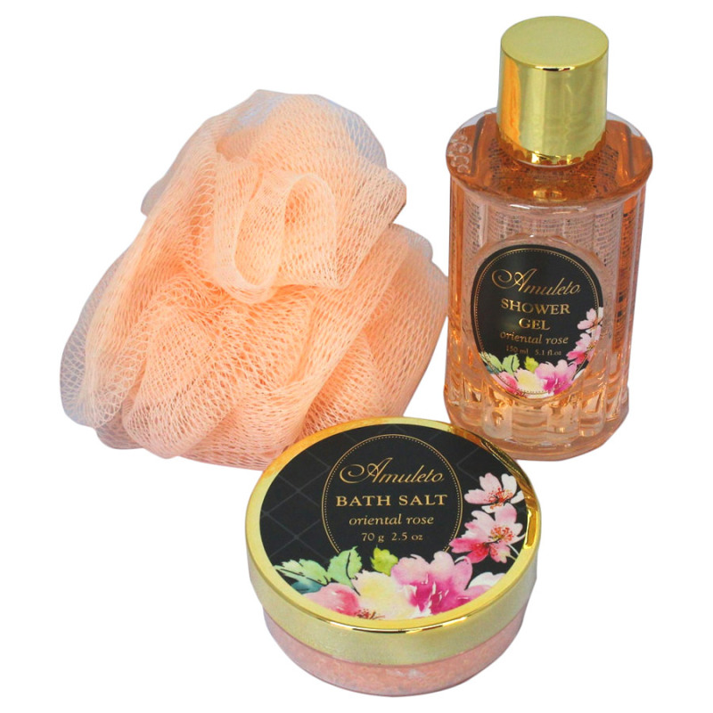 エレガントで落ち着いた雰囲気のAMULETOシリーズ。ボディケアアイテム5点の、お得なセットです。オリエンタルローズの香り